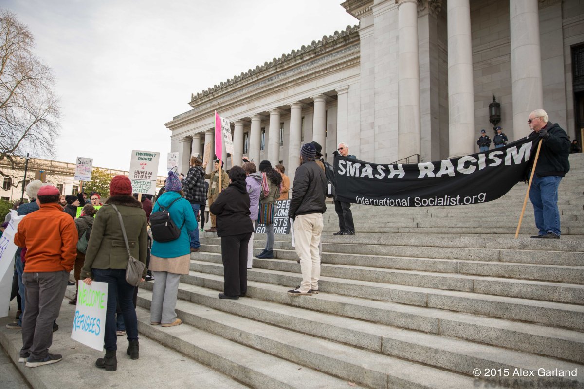 IMG_9842 Published November 20, 2015 at 5760 × 3840 in Anti-refugee protest at Washington State Capitol in Olympia met by larger group of pro-refugee demonstrators ← Previous Next →