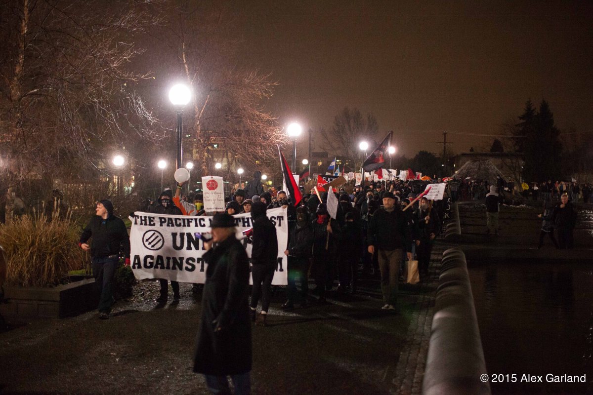IMG_6751 Published December 6, 2015 at 5616 × 3744 in Seattle anti-fascists march to confront no-show white supremacists ← Previous Next →