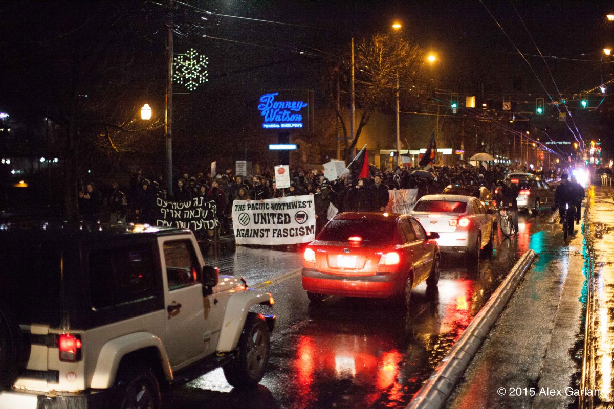 IMG_6817 Published December 6, 2015 at 5616 × 3744 in Seattle anti-fascists march to confront no-show white supremacists ← Previous Next →