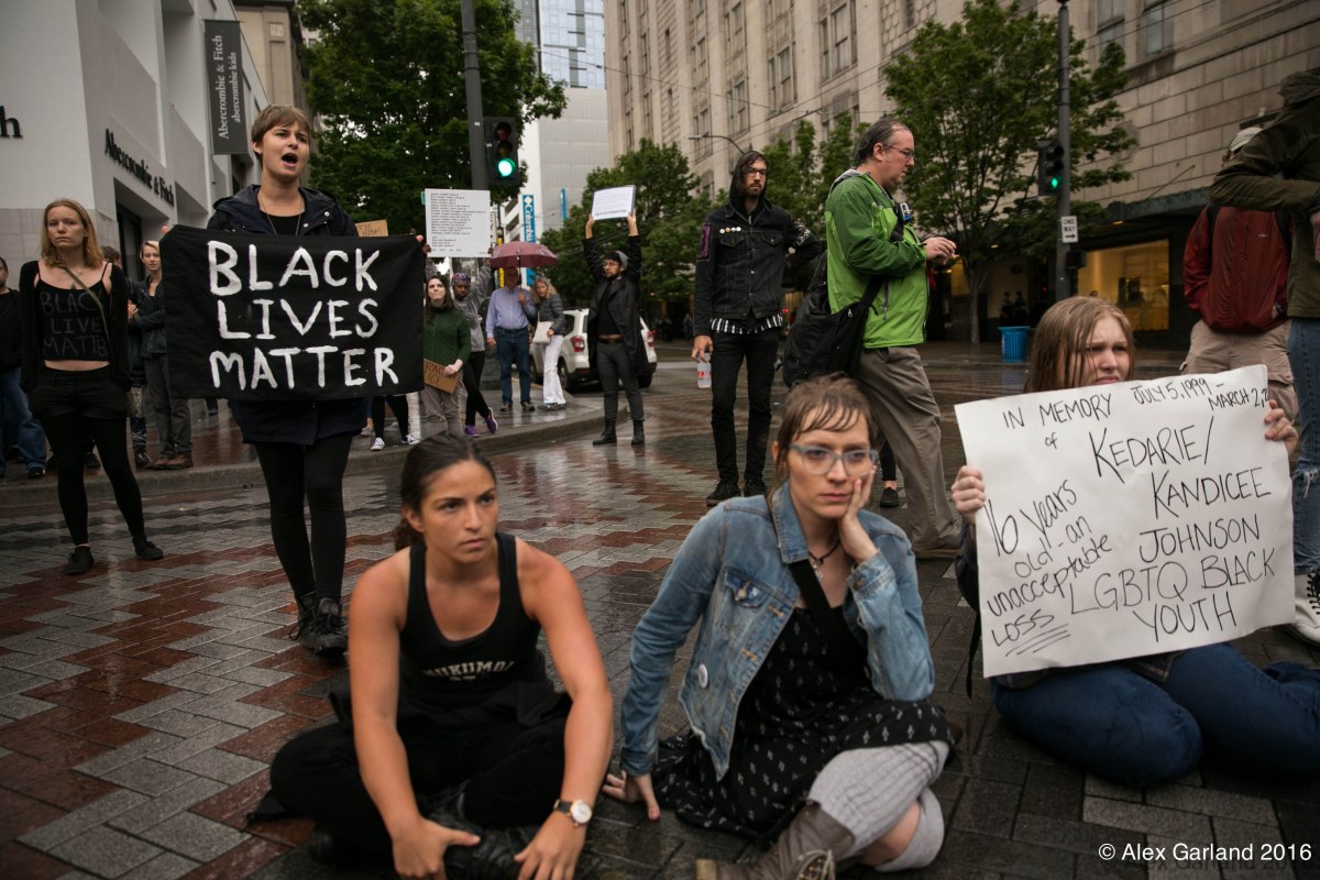IMG_0405 Published July 10, 2016 at 4104 × 2736 in Vigil turns to protest as Black Lives Matter takes Seattle streets ← Previous Next →