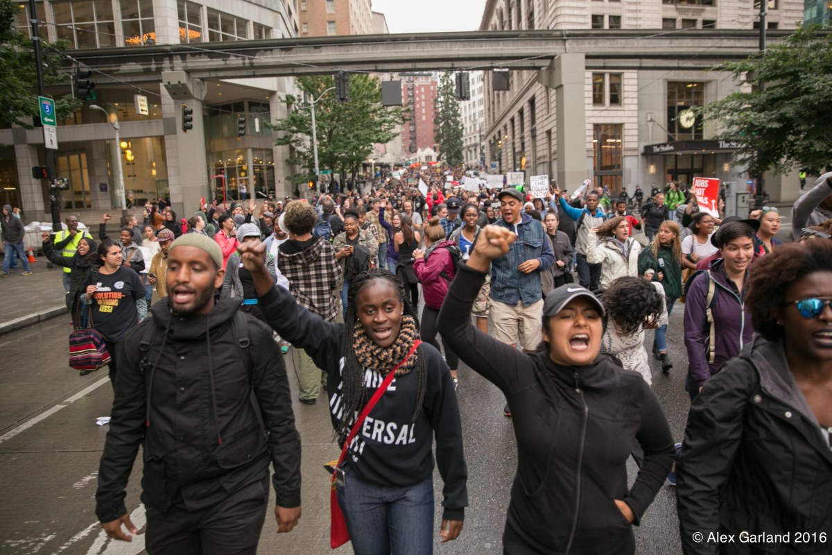 IMG_0493 Published July 10, 2016 at 4104 × 2736 in Vigil turns to protest as Black Lives Matter takes Seattle streets ← Previous Next →