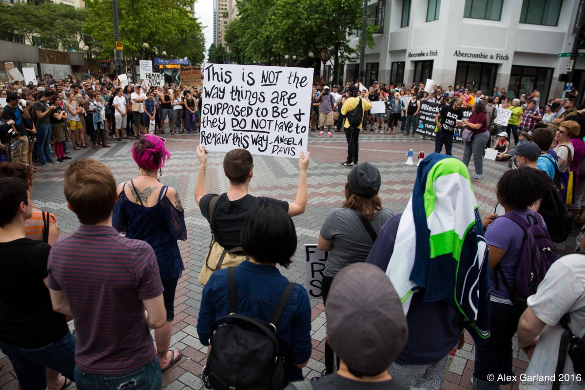 9U0A7718 Published July 22, 2016 at 5614 × 3743 in Black Lives Matter march blocks downtown Seattle traffic for hours ← Previous Next →