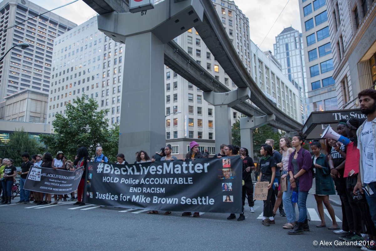 9U0A8601 Published July 22, 2016 at 5515 × 3677 in Black Lives Matter march blocks downtown Seattle traffic for hours ← Previous Next →