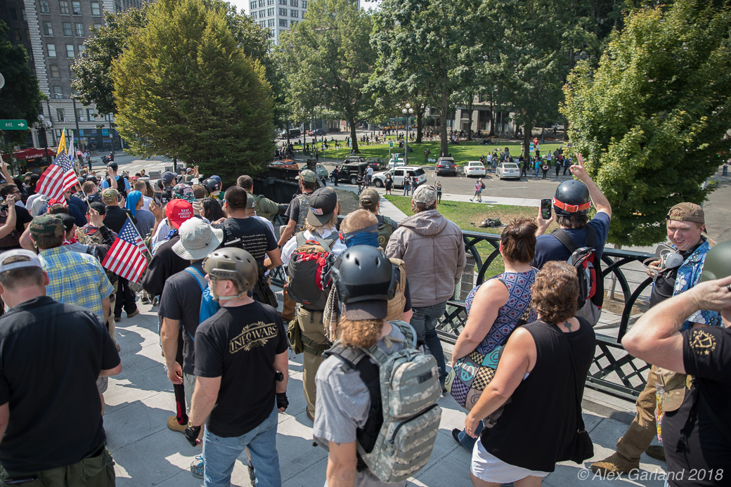 0Q6A2585 Published August 19, 2018 at 1040 × 693 in Far Right Rally Brings Twice The Number of Counter Protestors to Seattle City Hall ← Previous Next →