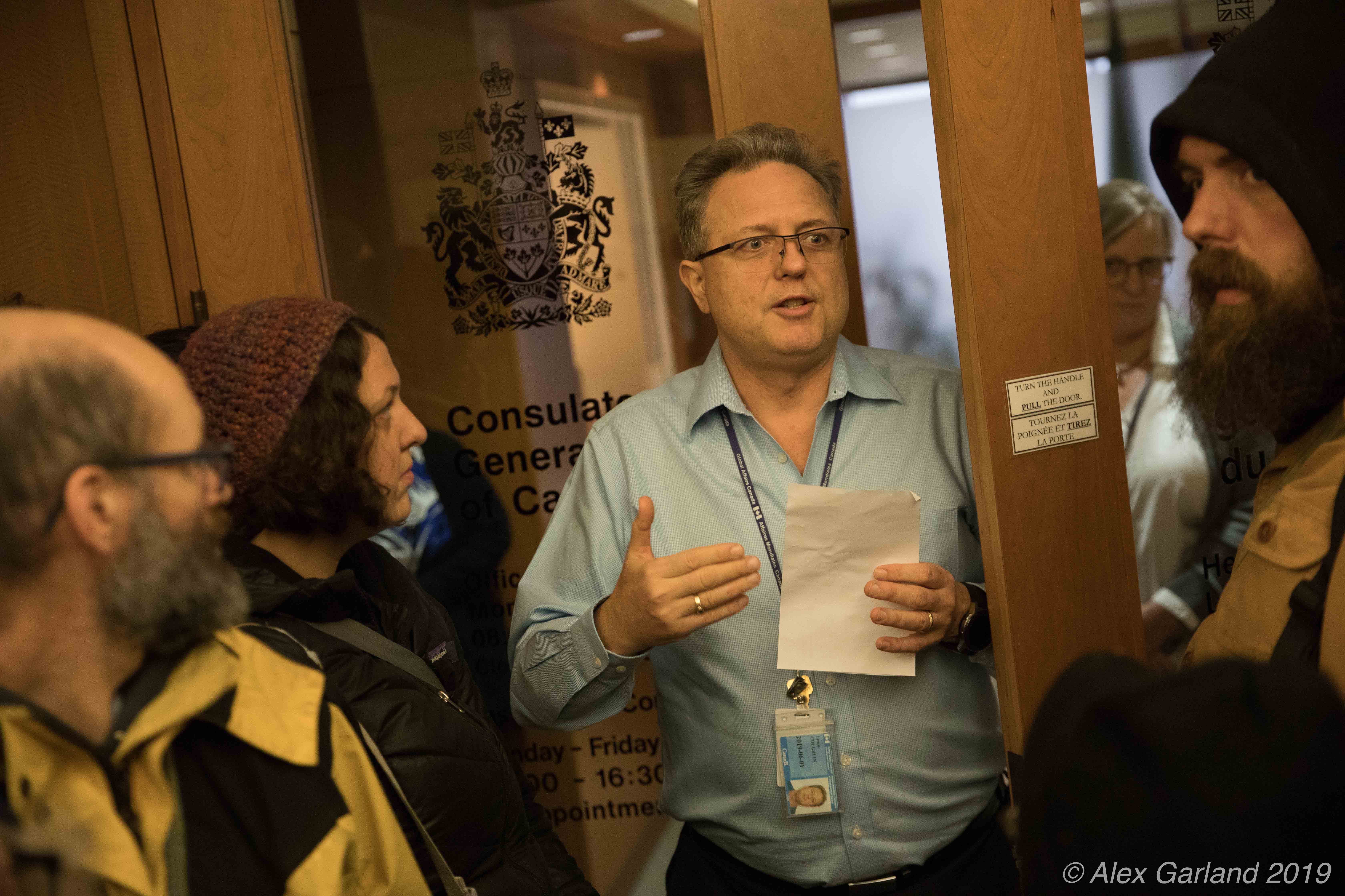 0q6a0509 Published January 8, 2019 at 6720 × 4480 in Seattle Activists Protest Arrests at Wet’suwet’en Camp in British Columbia ← Previous Next → A consulate official explains that they have received the petition, but that the group needs to leave the building.