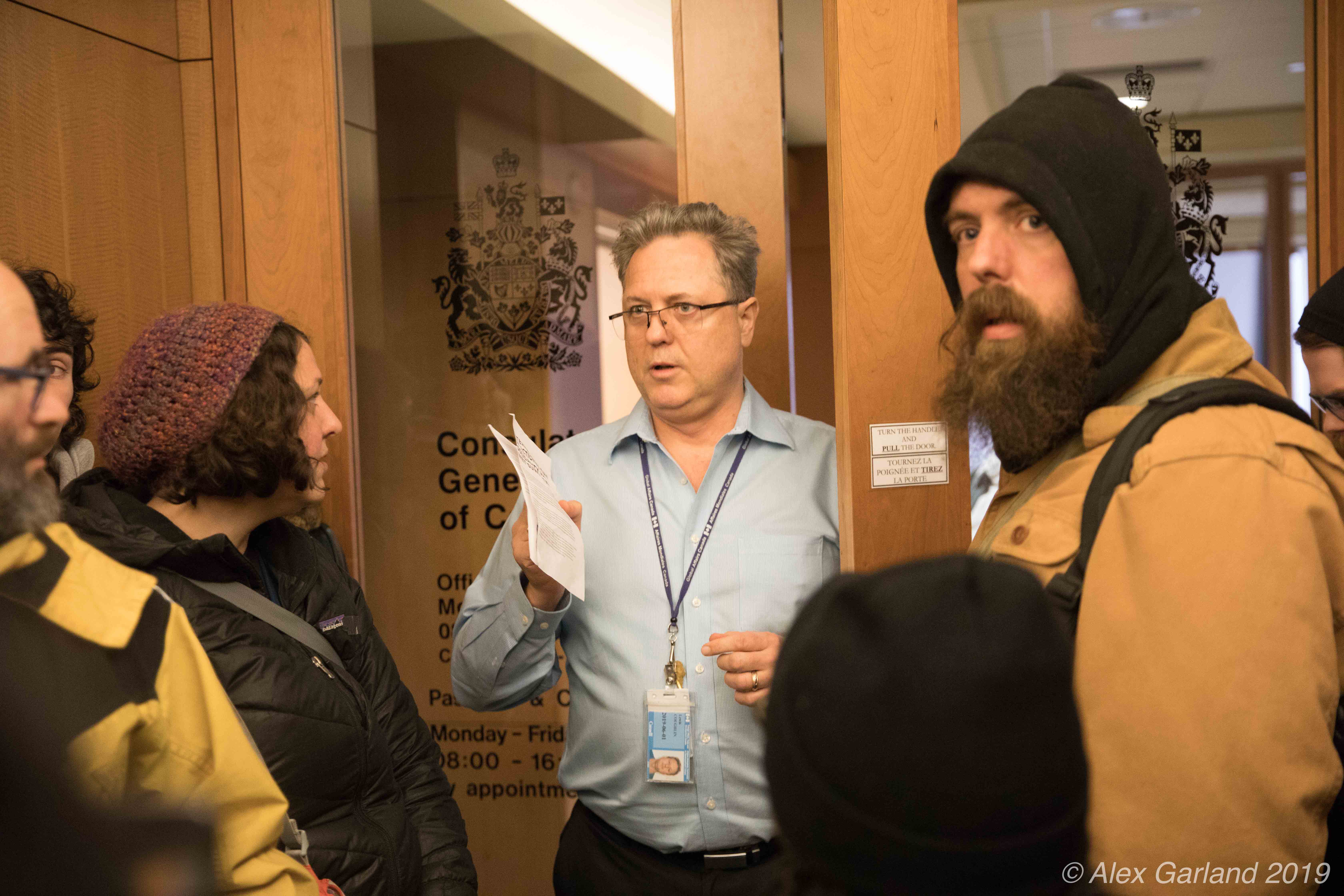 0q6a0551 Published January 8, 2019 at 6720 × 4480 in Seattle Activists Protest Arrests at Wet’suwet’en Camp in British Columbia ← Previous Next → Security is called, and the demand to exit the building is re-issued. Activists were determined to stay for two more songs. SPD never arrived and no arrests were made.