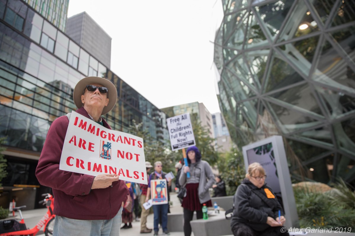 0Q6A7534 Published October 12, 2019 at 3375 × 2250 in Amazon’s Spheres and 4-star Store target of rally and picket against ICE technology ← Previous