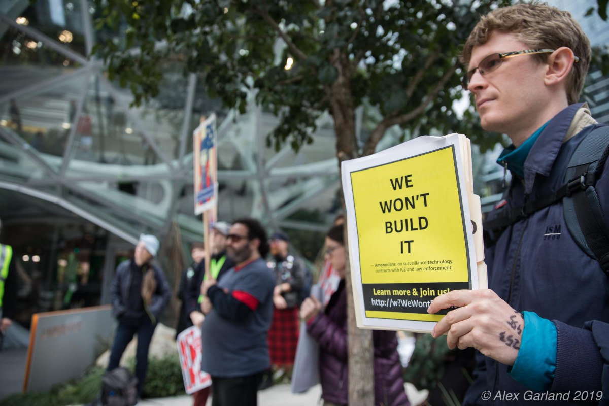 0Q6A7609 Published October 12, 2019 at 3375 × 2250 in Amazon’s Spheres and 4-star Store target of rally and picket against ICE technology ← Previous Next →