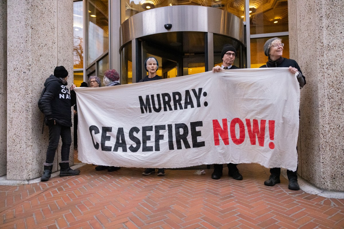 0A8A7608 Published November 3, 2023 at 2738 × 1826 in Activists with Jewish Voice for Peace shut down Seattle Federal Building ← Previous Next →