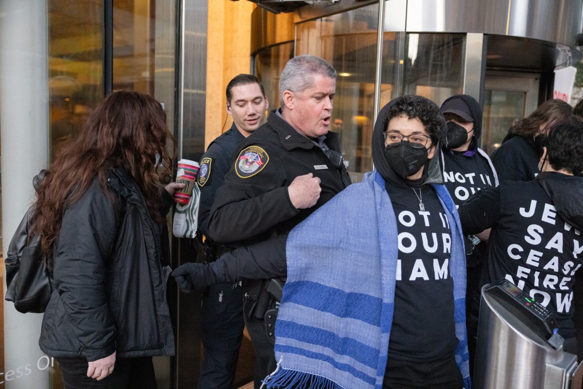 0A8A7624 Published November 3, 2023 at 2738 × 1826 in Activists with Jewish Voice for Peace shut down Seattle Federal Building ← Previous Next →