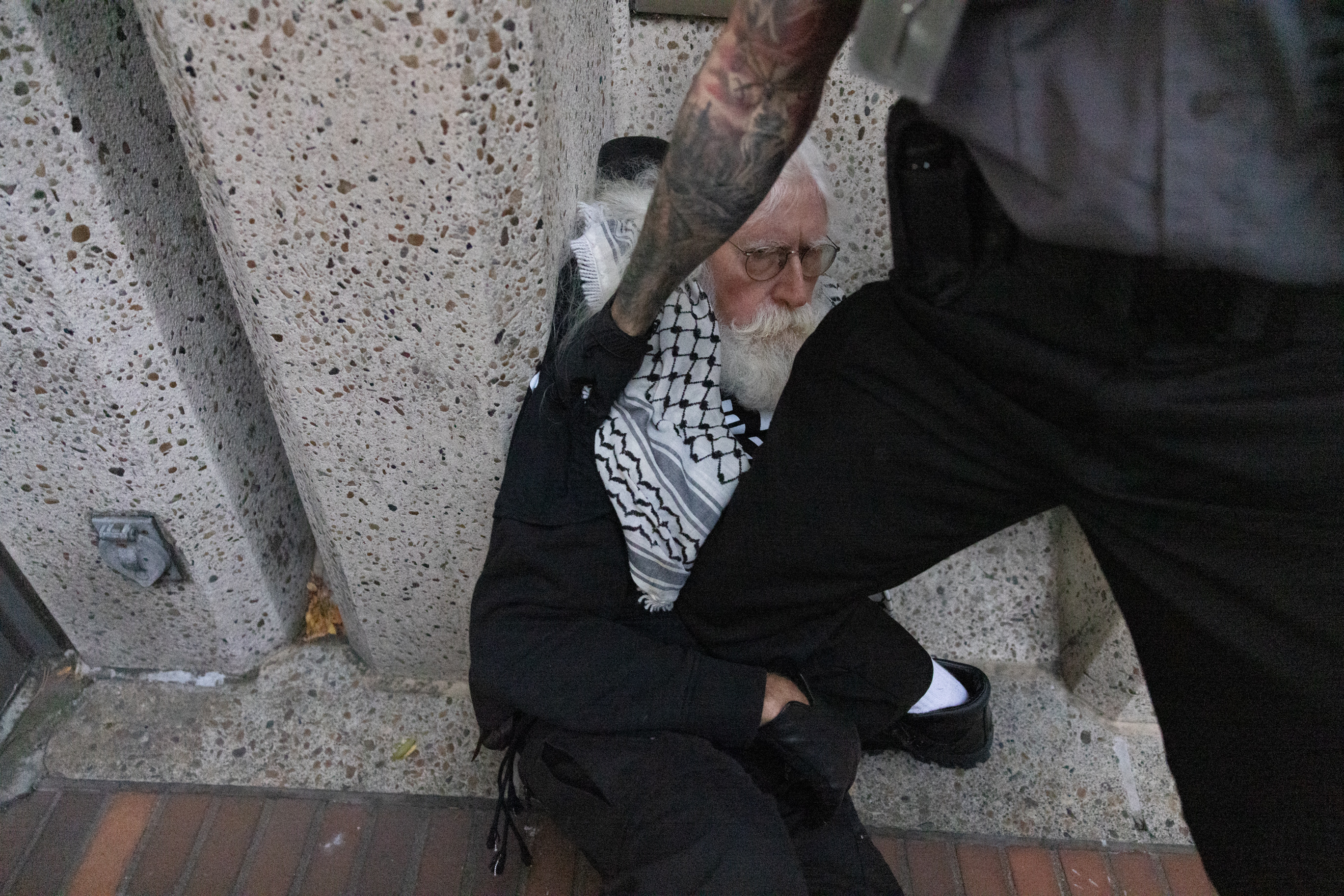 0A8A7737 Published November 3, 2023 at 2738 × 1826 in Activists with Jewish Voice for Peace shut down Seattle Federal Building ← Previous Next →