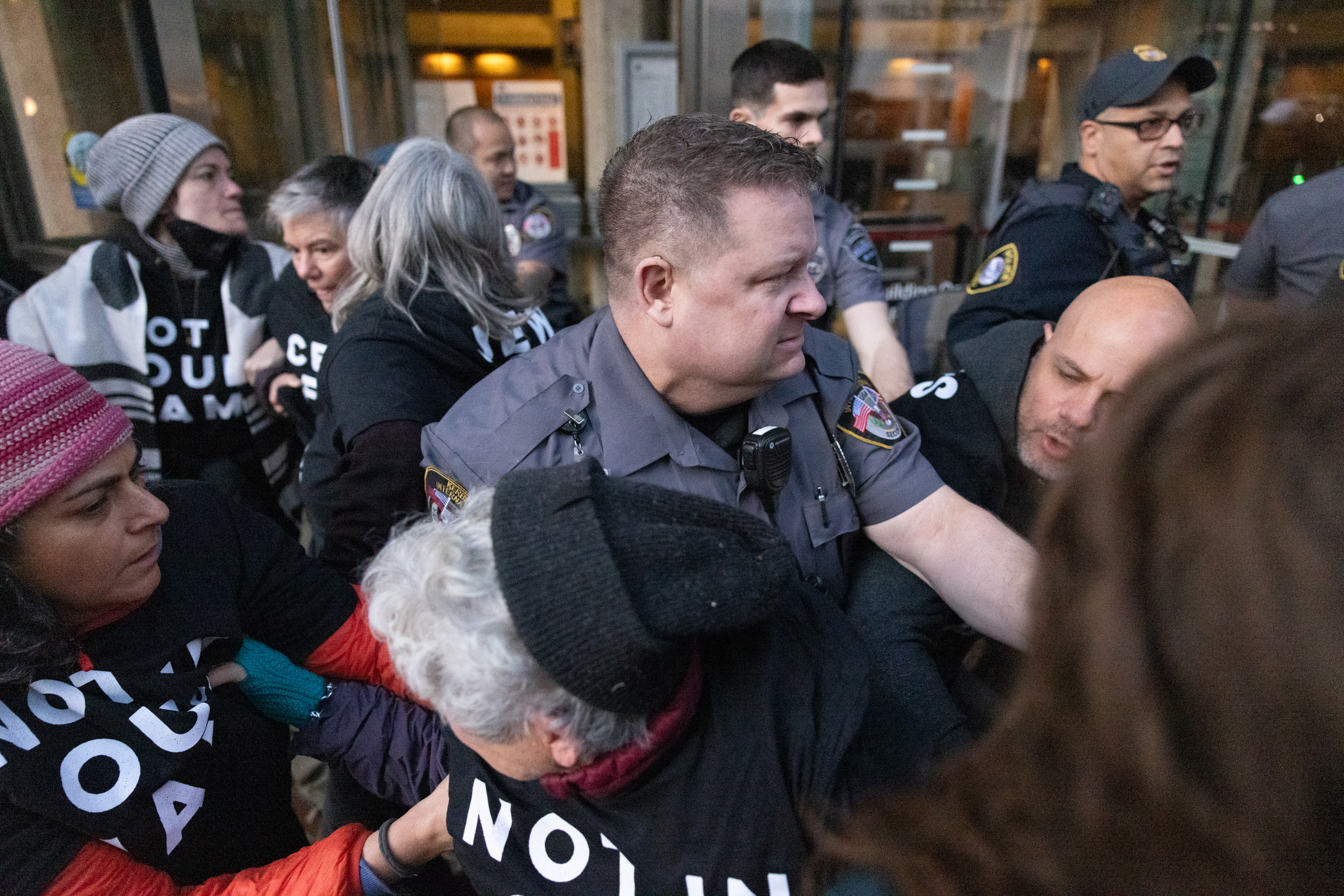 0A8A7838 Published November 3, 2023 at 2738 × 1826 in Activists with Jewish Voice for Peace shut down Seattle Federal Building ← Previous Next →