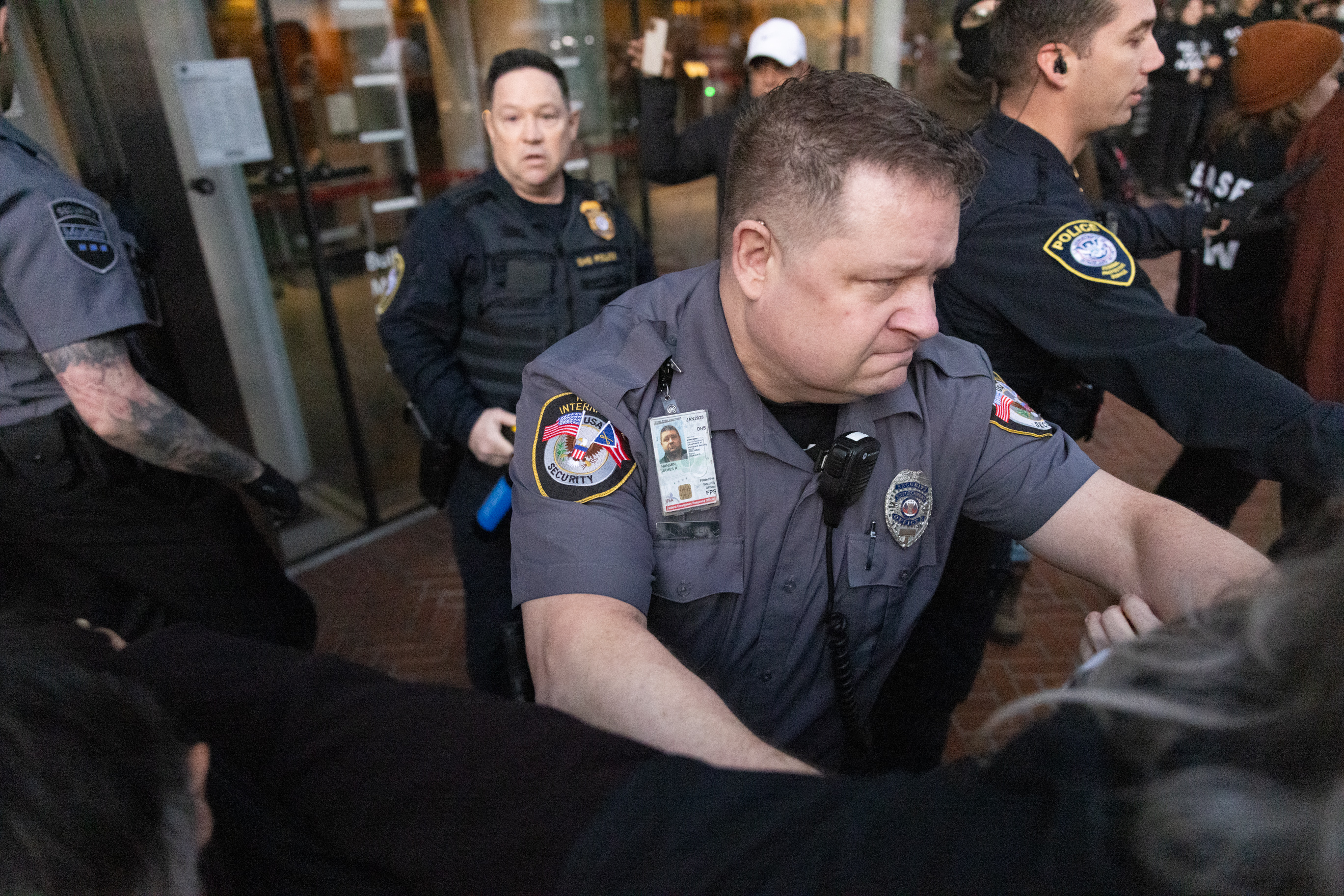 0A8A7882 Published November 3, 2023 at 2738 × 1826 in Activists with Jewish Voice for Peace shut down Seattle Federal Building ← Previous Next →