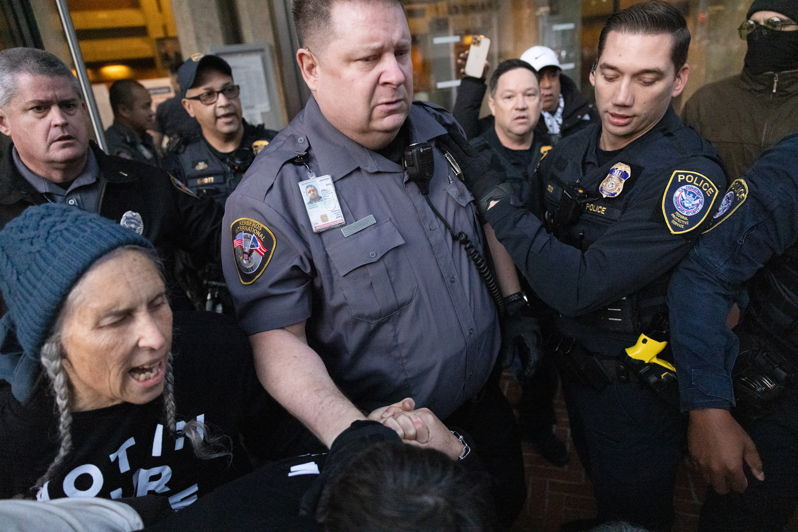 0A8A7920 Published November 3, 2023 at 2738 × 1826 in Activists with Jewish Voice for Peace shut down Seattle Federal Building ← Previous Next →
