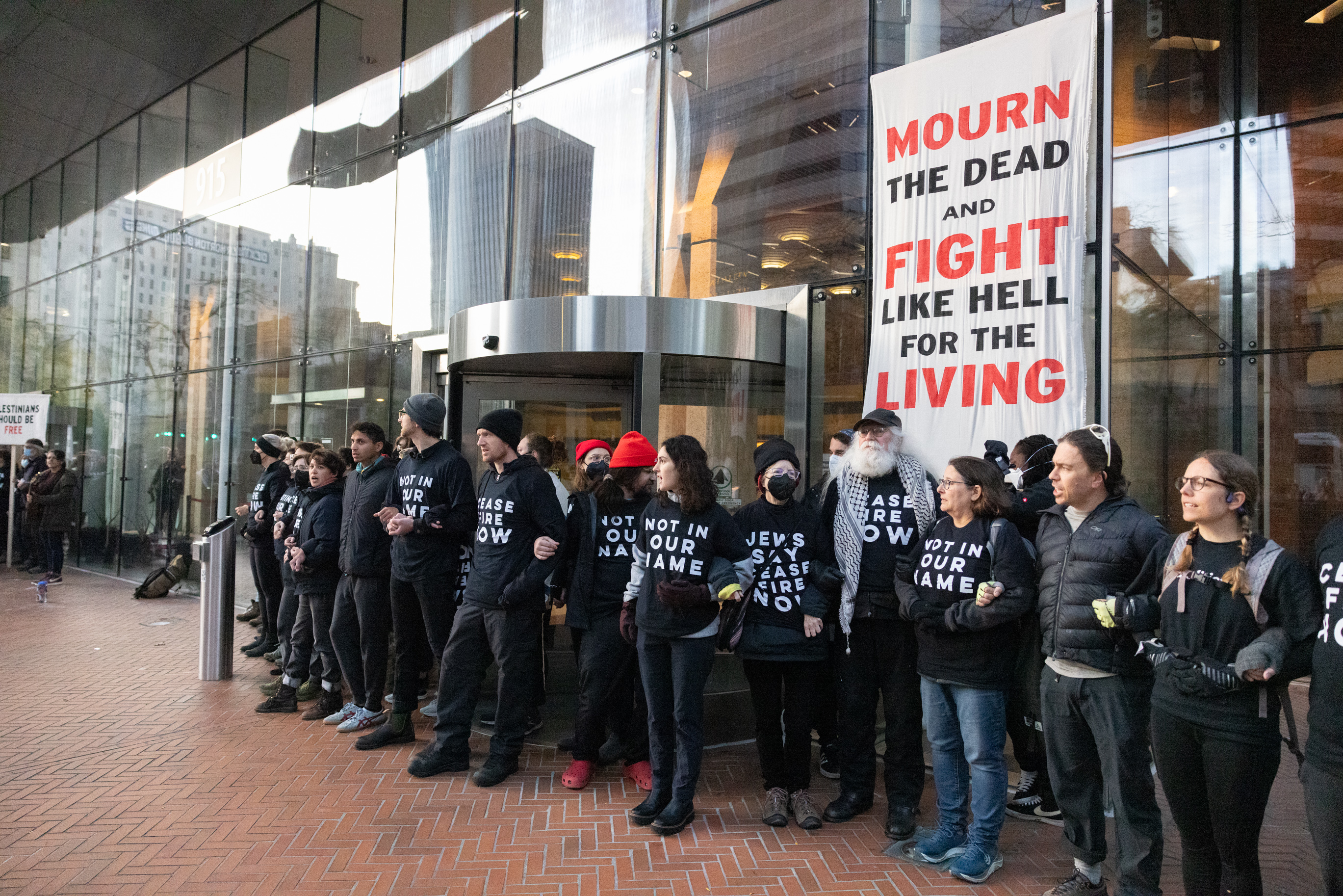 0A8A8069 Published November 3, 2023 at 2738 × 1826 in Activists with Jewish Voice for Peace shut down Seattle Federal Building ← Previous Next →