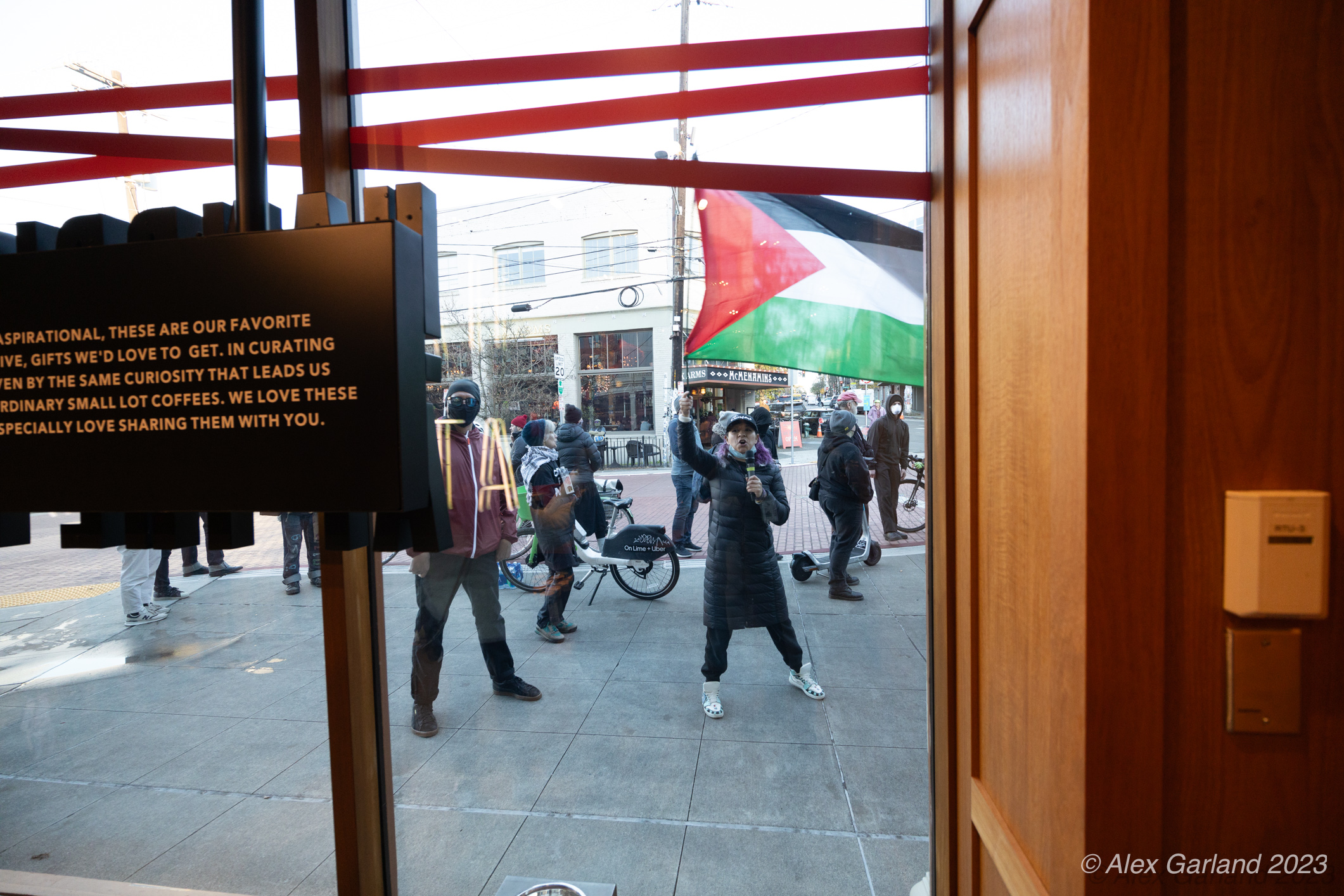 B35A9086 Published November 24, 2023 at 2121 × 1414 in Seattle Protest for Palestine Shuts Down Capitol Hill Starbucks and Disrupts Westlake Christmas Tree Lighting ← Previous Next →
