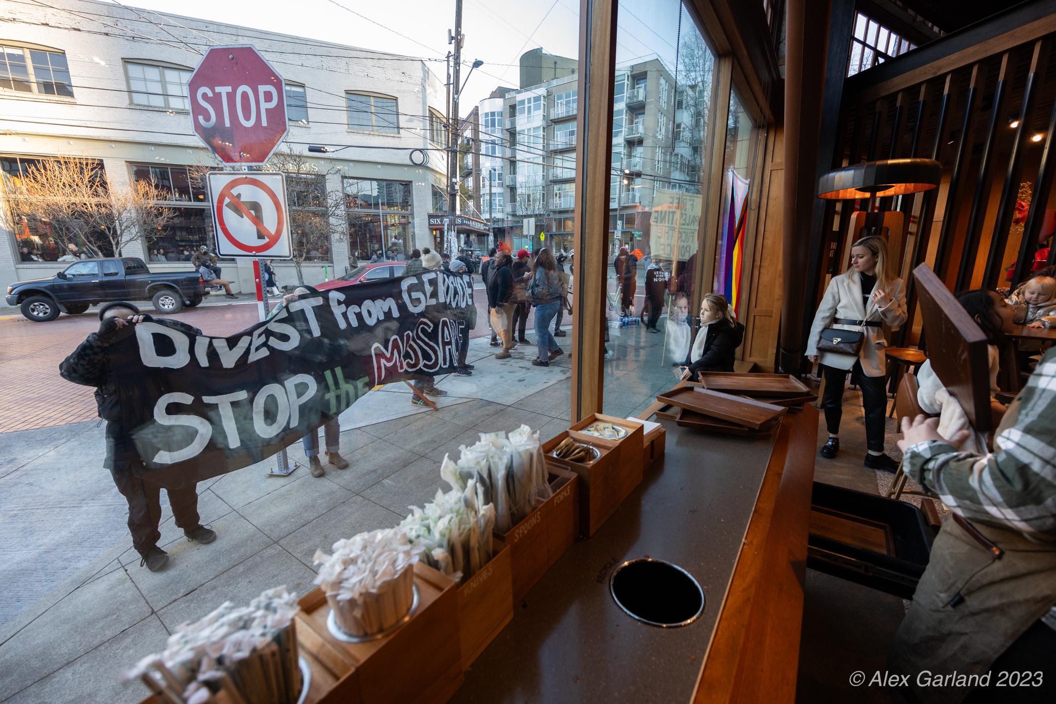 B35A9101 Published November 24, 2023 at 2121 × 1414 in Seattle Protest for Palestine Shuts Down Capitol Hill Starbucks and Disrupts Westlake Christmas Tree Lighting ← Previous Next →