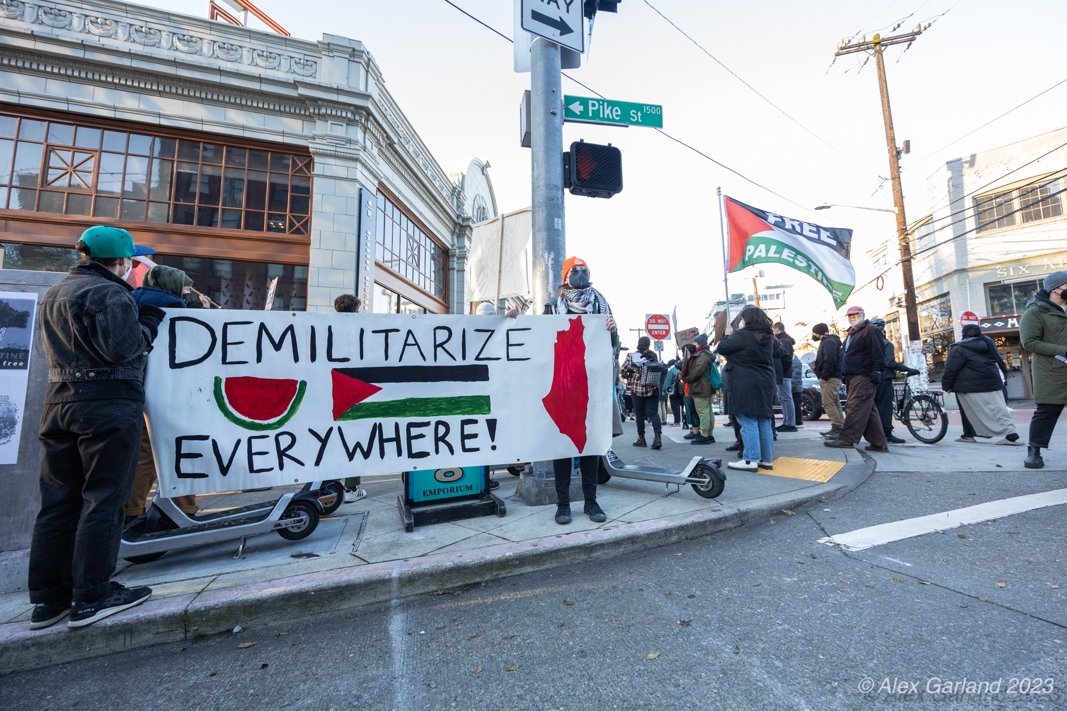 B35A9143 Published November 24, 2023 at 2121 × 1414 in Seattle Protest for Palestine Shuts Down Capitol Hill Starbucks and Disrupts Westlake Christmas Tree Lighting ← Previous Next →