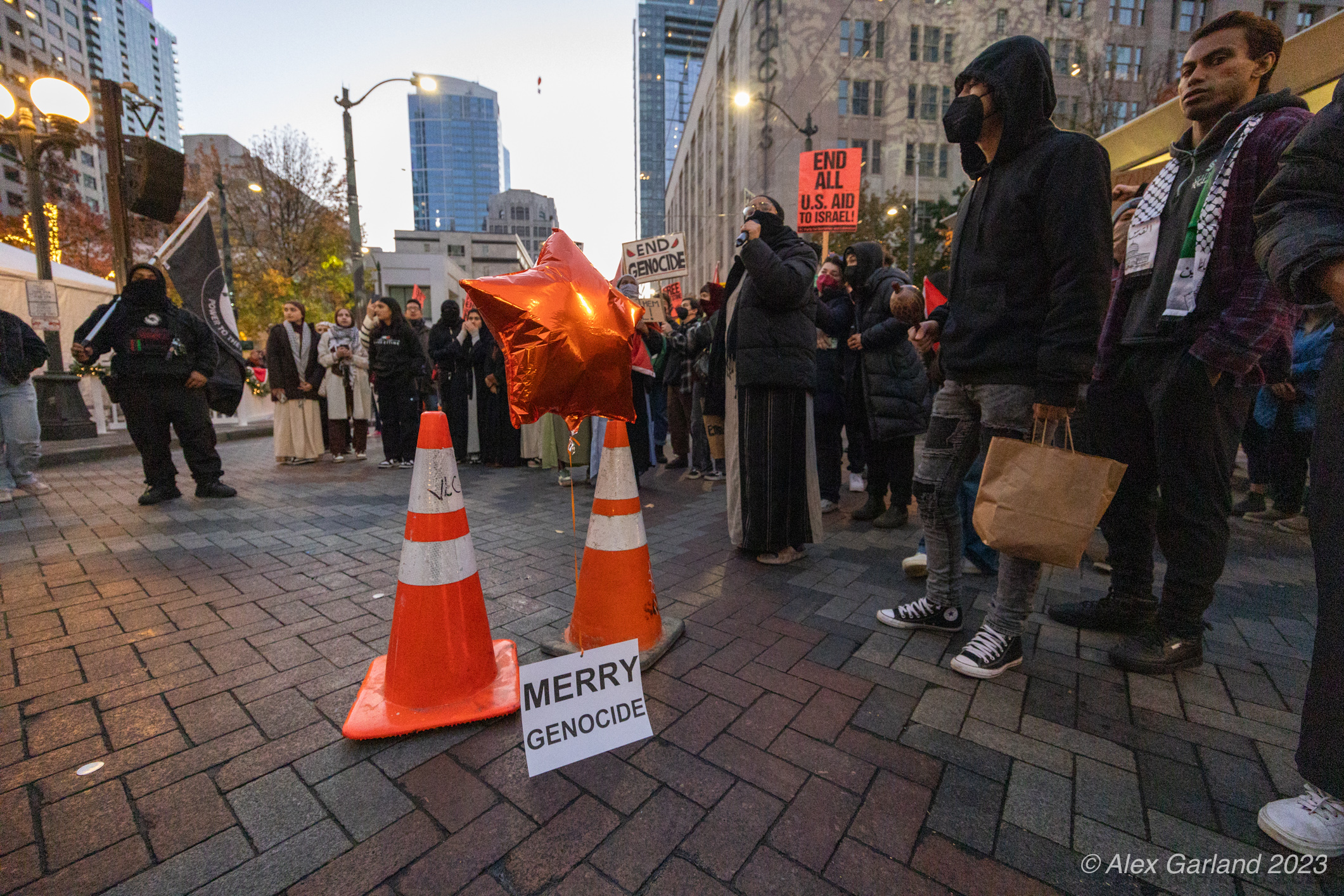 B35A9430 Published November 24, 2023 at 2121 × 1414 in Seattle Protest for Palestine Shuts Down Capitol Hill Starbucks and Disrupts Westlake Christmas Tree Lighting ← Previous Next →
