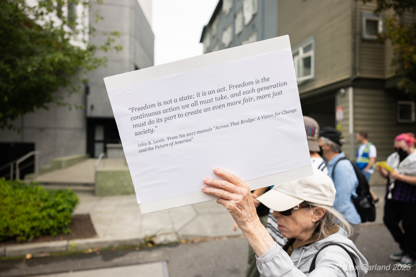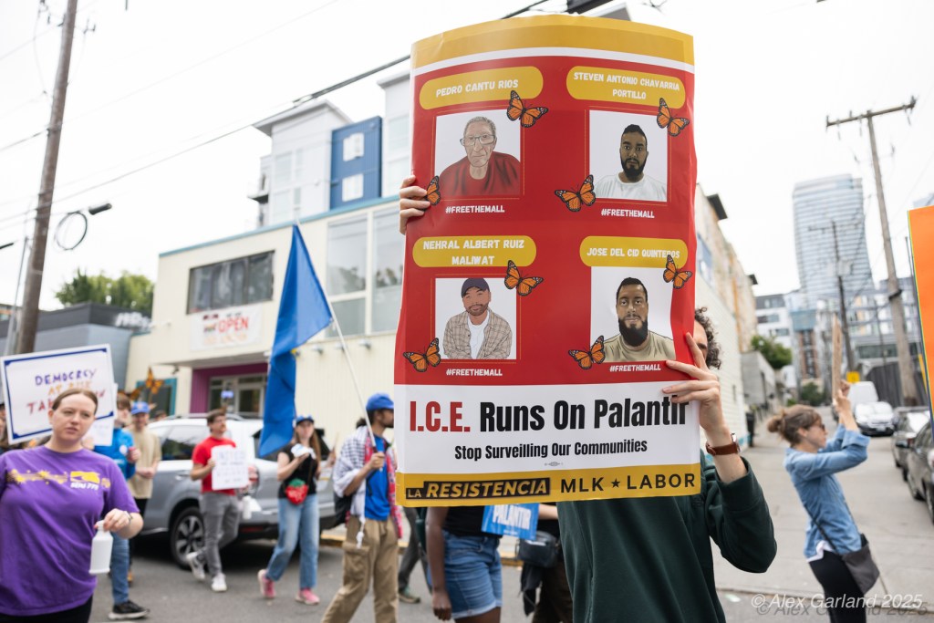 The decision to hold actions at both Palantir’s offices and the ICE facility in Tukwila underscored protesters’ argument that corporate surveillance technologies and immigration enforcement represent interconnected systems of control. Speakers had emphasized how companies like Palantir profit from government contracts while developing tools that affect both immigrant communities and broader worker organizing efforts.