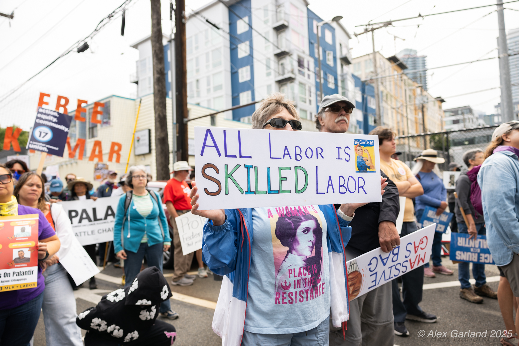 MLK Labor leads demonstration to Seattle’s Palantir HQ on Labor Day