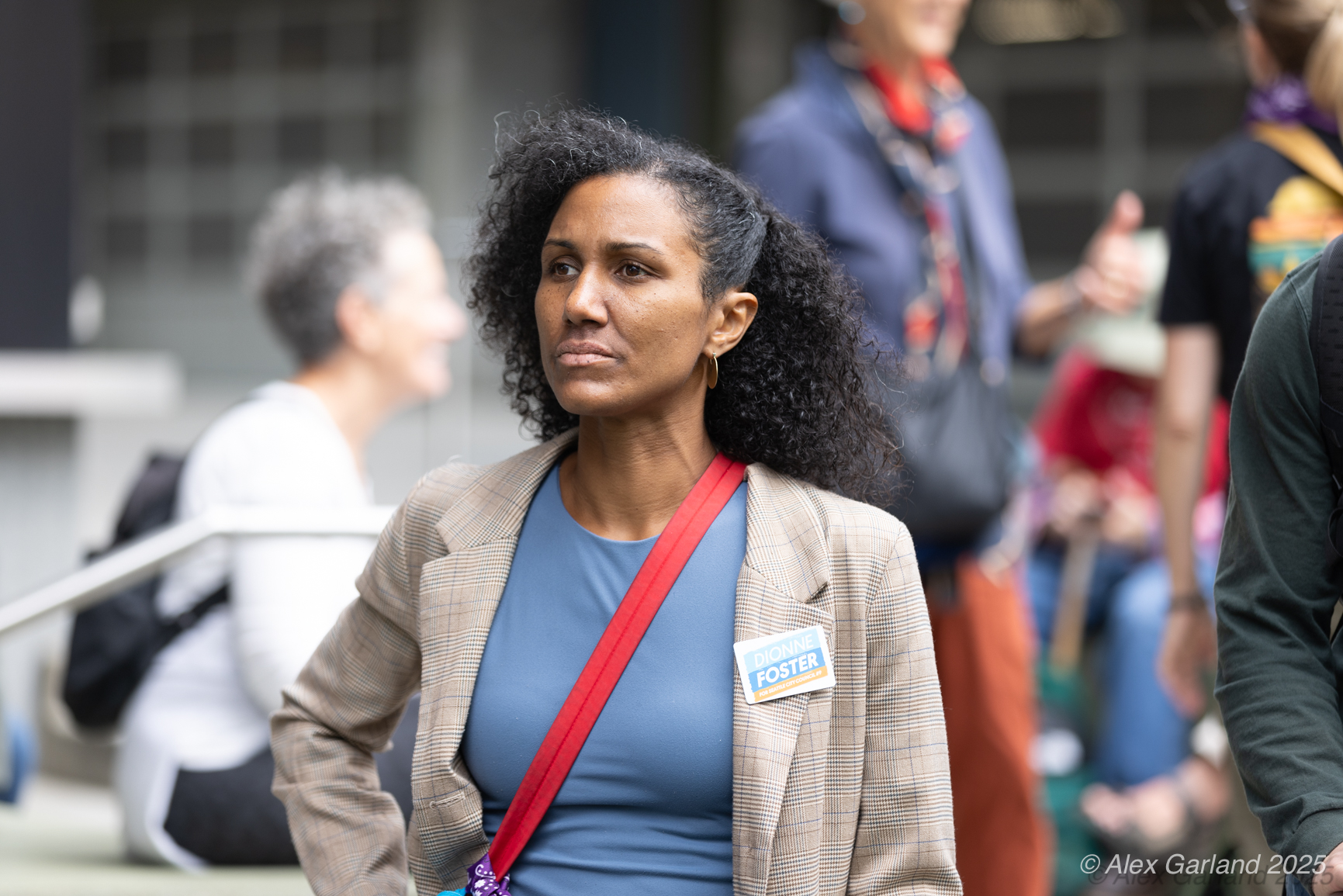 Garrow argued that current workers face similar challenges to those their grandmother fought, including environmental destruction and corporate control over workers’ lives. They specifically noted that federal workers have lost union protections and that Black workers face unemployment at twice the rate of white workers.