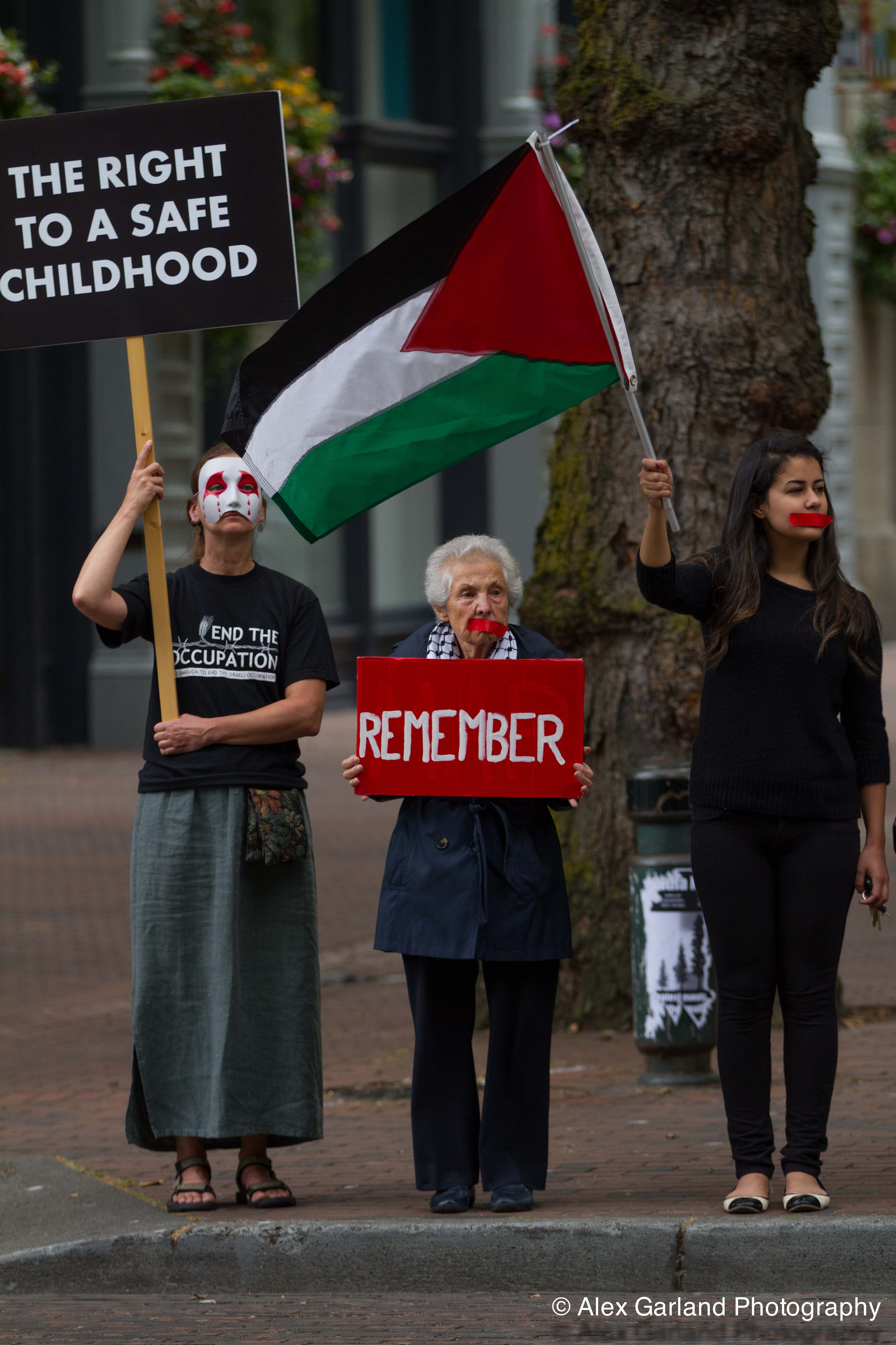 IMG_0025 Published July 24, 2014 at 3456 × 5184 Demonstrators arrive at Occidental Park in Seattle to silently counter protest a pro Israel demonstration.