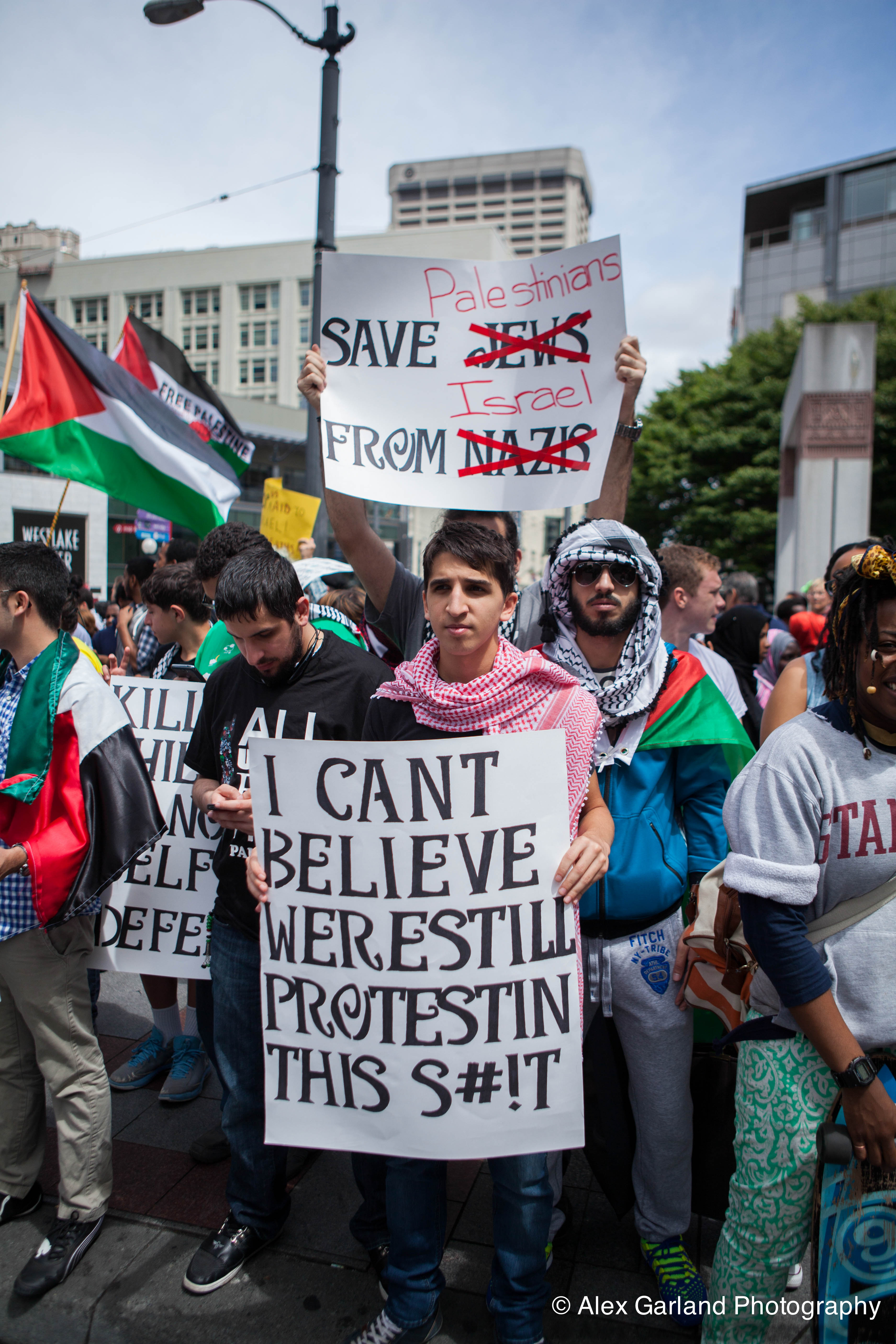IMG_0705 Published July 24, 2014 at 3744 × 5616 Demonstrators line the sidewalks of Westlake Park at a pro Palestine rally in Seattle, WA.