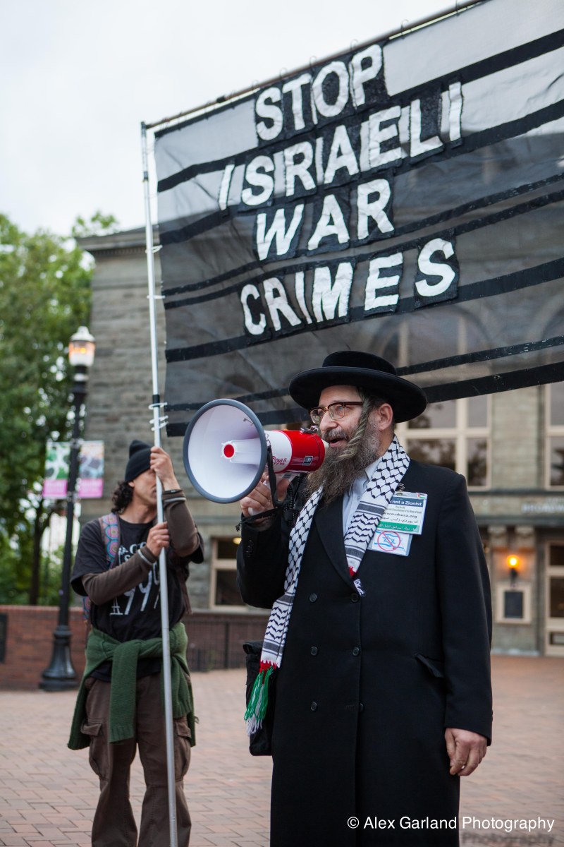 IMG_2343 Published July 25, 2014 at 3744 × 5616 Speaking to the crowd before the march, this Jewish man assures the crowd that disapproval with Israels actions against Palestine was not anti-semitic.