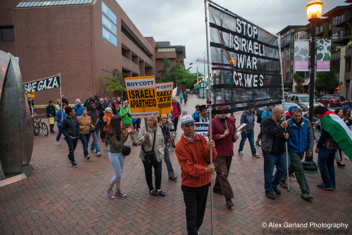 IMG_2444 Published July 25, 2014 at 5616 × 3744 Pro Palestine demonstrators bang pots and pans as they march from Seattle Central University through the Capitol Hill neighborhood of Seattle.