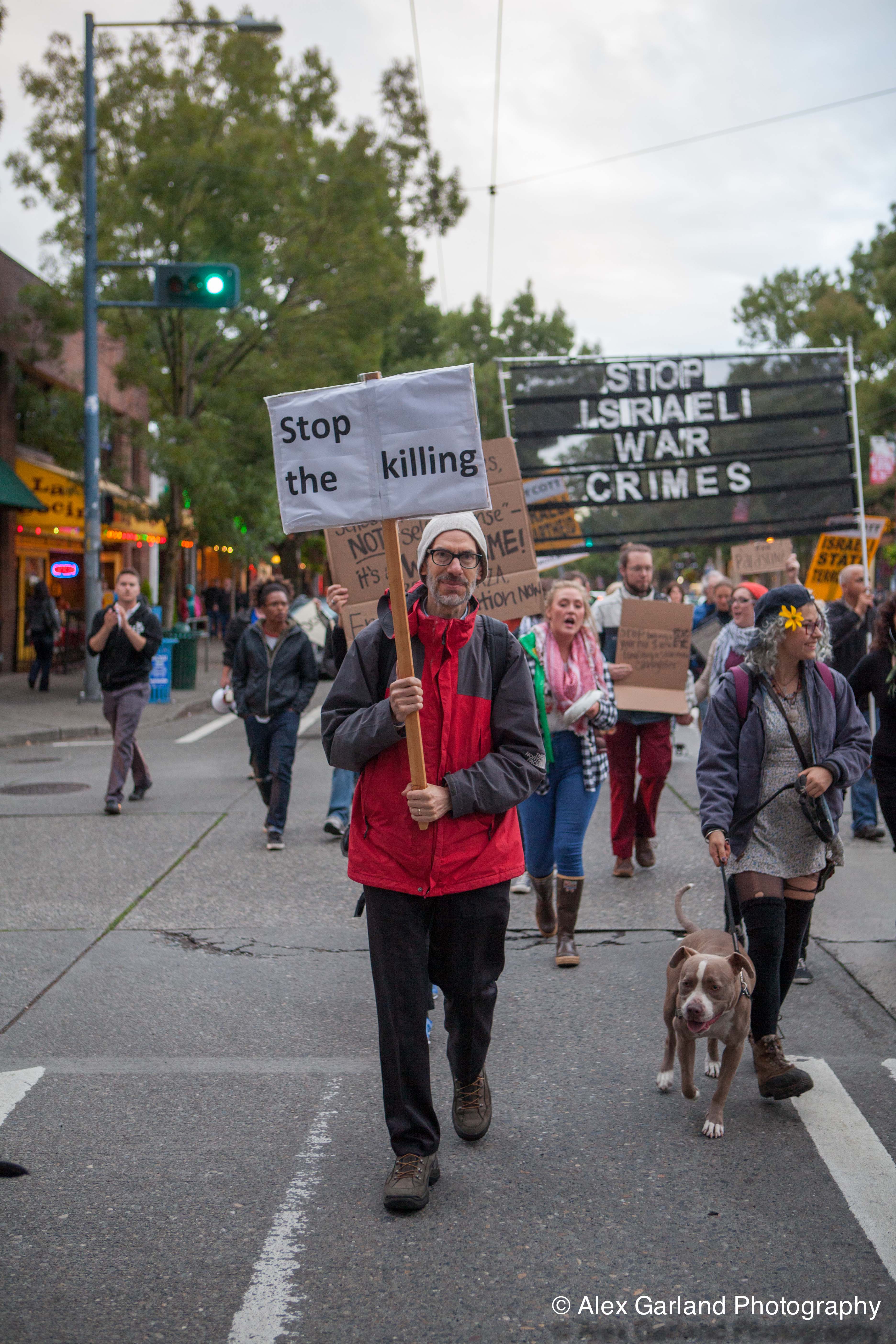 IMG_2745 Published July 25, 2014 at 3744 × 5616 An activist shares a simple message as they march through Seattle protesting Israeli War Crimes