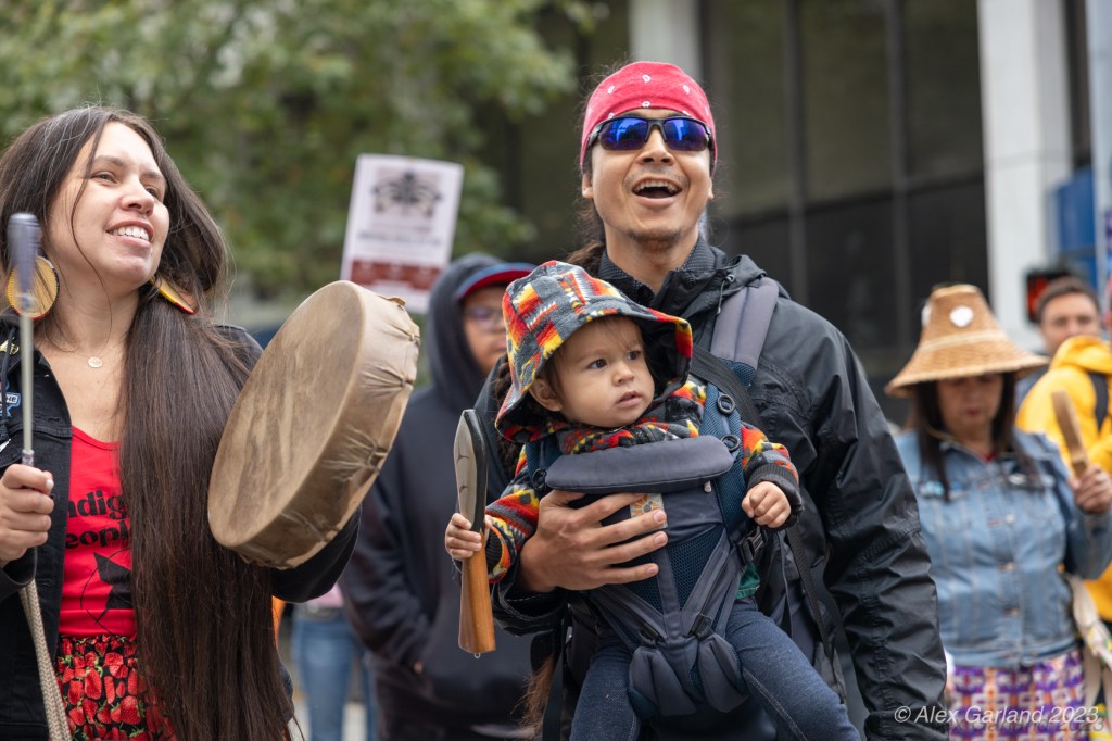 Activists took turns speaking about the atrocities in Palestine, some protestors released balloons with signs reading “Merry Genocide”, “Free Palestine”, and “Let Gaza Live”, and eventually the tree was lit, and the crowds began leaving.